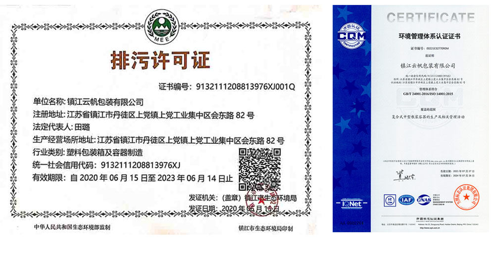 鎮(zhèn)江云帆包裝有限公司,統(tǒng)一社會(huì)信用代碼9132111208813976XJ,法定代表人:田璐,生產(chǎn)地址:鎮(zhèn)江市丹徒區(qū)上黨鎮(zhèn)上黨工業(yè)集中區(qū)會(huì)東路82號(hào),主要從事復(fù)合式中型散裝容器的生產(chǎn)及銷售。于2020年6月15日取得排污許可證,主要污染物為非甲烷總烴及顆粒物,排放濃度及總量均未超標(biāo),相關(guān)檢測報(bào)告見附件。另我司已于2020年4月完成環(huán)境保護(hù)驗(yàn)收工作,并于2021年7月27日取得環(huán)境管理體系認(rèn)證證書。